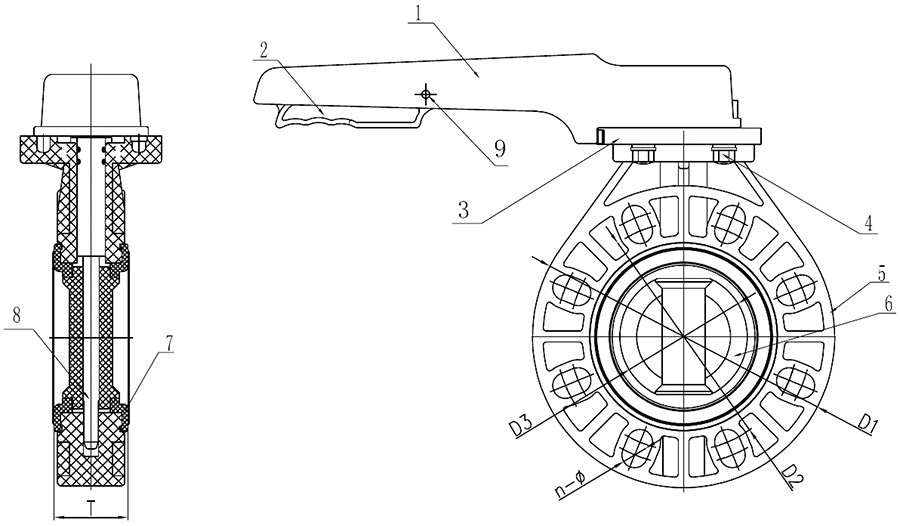 FRPP/Rpp手輪式蝶閥手動中心密封軟密封DN40-DN150工業(yè)和家用塑料杠桿手柄閥