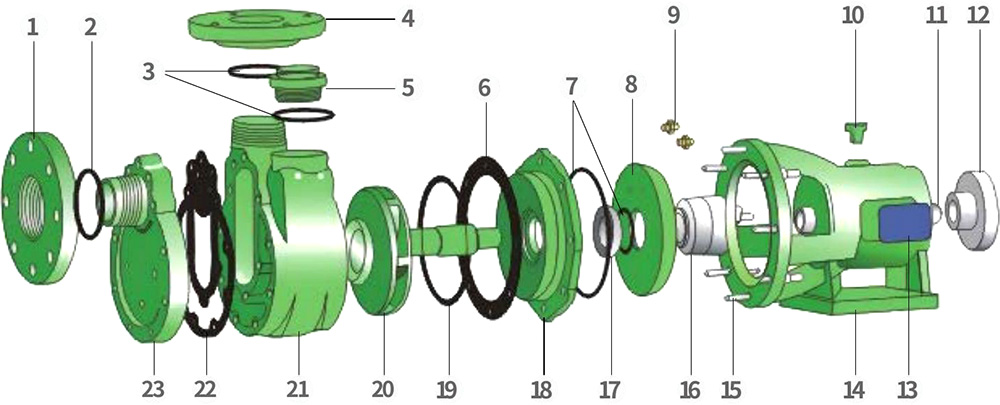 | 23 | 前泵蓋 | FRPP.PVDF |